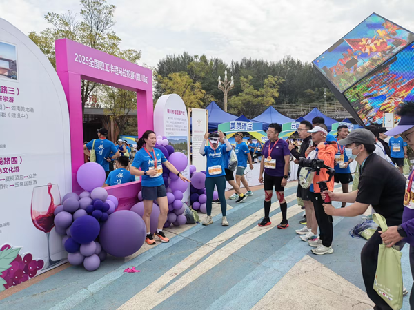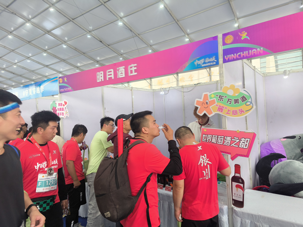 为大力向全国劳动者们推广银川市特色葡萄酒产业,解锁“葡萄酒+马拉松”的结合方式,银川市精心策划了一系列葡萄酒品牌宣传推介服务,将银川的独特魅力展现给马拉松跑者和观众,促进商文旅农体酒融合。一是提供惊喜,丰富马拉松参赛包。为让参赛选手在享受运动激情的同时,也能感受到葡萄酒的美妙,银川市特别为所有参赛选手在参赛包中放置了定制精品干红葡萄酒1瓶。让选手们在完成比赛后,不仅能品尝到美酒,还能将这份独特的纪念带回家。二是发展票根经济,开展酒庄开放日活动。组织银川市利思、志辉源石、张裕龙渝、沃尔丰、欣恒等55家酒庄企业在2025全国职工半程马拉松赛(银川站)期间开展酒庄开放日活动,来宁游客/跑友可持号码牌或机票、火车票、过路费等票据,以及各景区门票票根给予参观、购酒优惠活动折扣。三是搭建酒庄展位,向外界宣传推广银川葡萄酒。为酒庄搭建展位,组织立兰、贺兰红、沃尔丰等13家酒庄开展现场展示展销活动。其中马拉松起点嘉年华处5家,马拉松终点(花博园处)8家,可供选手现场了解葡萄酒并选购。四是从起点到终点,在赛道沿途设置10个葡萄酒及酒庄展演点位,酒庄及葡萄酒从业人员在赛道上参与银川市葡萄酒风采的展演展示,同时放置5处精品打卡美陈、葡萄酒展览、宣传横幅、手举牌、以及10个葡萄酒元素人偶等,吸引大众的目光,让葡萄酒成为跑友们来银“第一印象”。