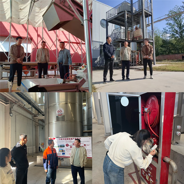 一是全力做好安全生产警示提示工作。联合气象、防汛相关部门持续做好气象预警工作,及时向酒庄(企业)发布暴雨、雷电、大风、降温等预警信息和《酿酒葡萄气象服务专报》,并给予酒庄(企业)酿酒葡萄采摘、病虫害预防等生产建议。其次向酒庄(企业)及时发送安全生产提示函,提示酒庄(企业)做好生产季期间的各项准备工作的同时提高安全生产风险防范意识,进一步开展生产季全面深入的安全生产大检查,做好酒庄旅游接待安全保障、消防安全防范、促销宣传活动安全防范等工作。二是加强安全问题隐患排查工作。对志辉源石酒庄、利思酒庄、暖泉酒庄等多家酒庄(企业)进行了安全生产监督检查,从消防设施是否完善,用气用电是否安全,车间除梗破碎机、气囊压榨机等设备是否完好并正常运行,辅料、农资存放使用是否得当全方位进行了安全隐患排查,并对节假日期间旅游接待等方面安全保障工作进行了再次强调。三是落实一对一服务酒庄制度做好服务工作。通知酒庄(企业)生产季中有困难和问题及时向我中心反映,要求对应一对一服务酒庄干部职工及时前往各酒庄(企业)进行协调解决相关问题,真正做到“企有所呼,我有所应”,为产区葡萄生产季提供有力服务保障。