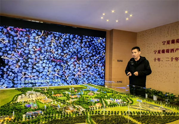 西班酒庄庄主金家瑞,这位在湖南老家做进口红酒的行家,紧紧抓住2018年宁夏到湖南招商引资的机遇,让西班酒庄落户于青铜峡市鸽子山葡萄酒小镇,从起初租地种葡萄、租车间酿酒开始,到2021年申报建酒庄,如今项目全部建成,每年除了自种3000多亩葡萄外还收购1100吨左右的葡萄,酿酒量达720吨。他将经营了20多年的进口酒渠道转换成贺兰山东麓葡萄酒,并积极参加国内及国际著名的酒产品博览会及大赛,让产于鸽子山的葡萄酒有更广泛的影响力,打开国内外葡萄酒市场。