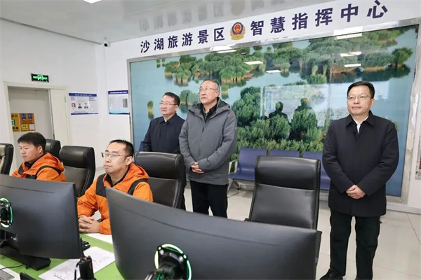 李邑飞在沙湖自然保护区,调研景区总体布局及发展规划情况。