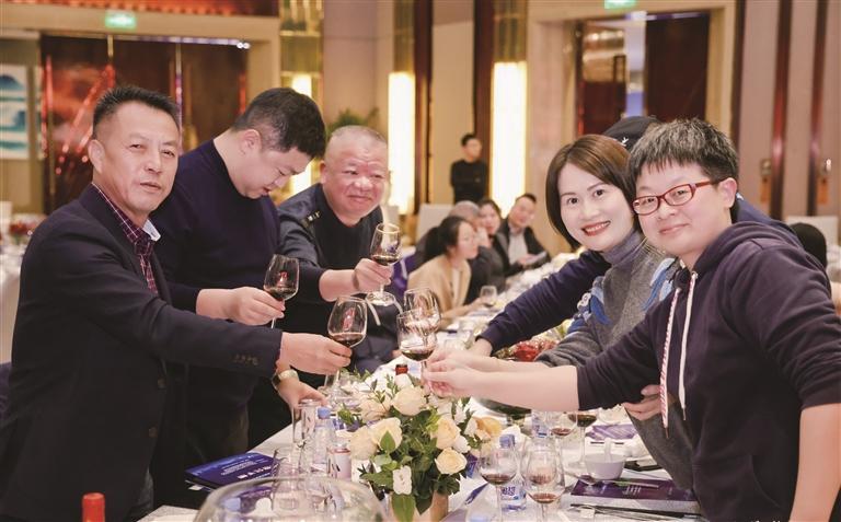 与会嘉宾举杯品鉴宁夏葡萄酒。
