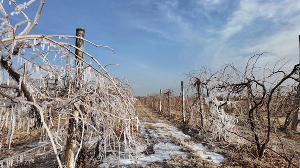寒风中,冰霜覆盖的葡萄藤静默挺立。在这片曾经的荒滩上,一群酿酒人正用热爱与创新,默默改写产业的冬天。(宁夏日报记者 王婧雅 文/图)