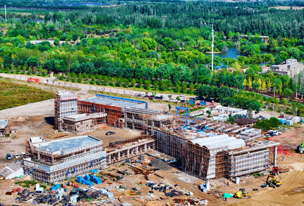 9月23日拍摄的宁夏玉麓酒庄施工作业现场。该项目位于银川市西夏区镇北堡镇昊苑村,是银川市酒旅融合重点项目,项目总投资近3亿元,总占地面积达600亩,其中一期工程占地15.86亩,涵盖酿酒车间、地下酒窖、瓶储车间、品鉴中心等核心功能区,设计年产能超1000吨优质葡萄酒。自去年10月开建以来,项目团队始终紧盯进度与质量,目前已进入冲刺阶段。记者 马楠 摄