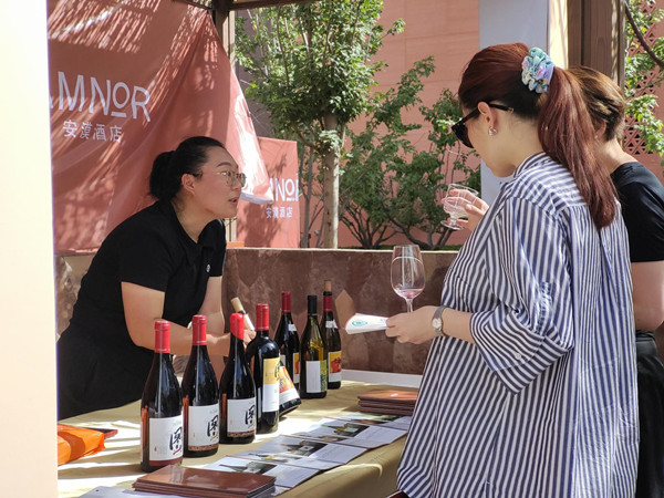 在图兰朵葡萄酒小镇安漠酒店一楼的葡萄酒展区,来自上海的庄莺用自助扫码接了一杯酒店自产的葡萄酒,她也是被《星星的故乡》种草,先后去了志辉源石酒庄、美贺庄园及周边的镇北堡西部影城、贺兰山岩画等景区,和家人一起看贺兰山,体验亲子游,品尝葡萄酒。