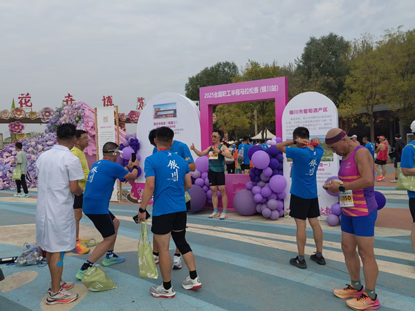 为大力向全国劳动者们推广银川市特色葡萄酒产业,解锁“葡萄酒+马拉松”的结合方式,银川市精心策划了一系列葡萄酒品牌宣传推介服务,将银川的独特魅力展现给马拉松跑者和观众,促进商文旅农体酒融合。一是提供惊喜,丰富马拉松参赛包。为让参赛选手在享受运动激情的同时,也能感受到葡萄酒的美妙,银川市特别为所有参赛选手在参赛包中放置了定制精品干红葡萄酒1瓶。让选手们在完成比赛后,不仅能品尝到美酒,还能将这份独特的纪念带回家。二是发展票根经济,开展酒庄开放日活动。组织银川市利思、志辉源石、张裕龙渝、沃尔丰、欣恒等55家酒庄企业在2025全国职工半程马拉松赛(银川站)期间开展酒庄开放日活动,来宁游客/跑友可持号码牌或机票、火车票、过路费等票据,以及各景区门票票根给予参观、购酒优惠活动折扣。三是搭建酒庄展位,向外界宣传推广银川葡萄酒。为酒庄搭建展位,组织立兰、贺兰红、沃尔丰等13家酒庄开展现场展示展销活动。其中马拉松起点嘉年华处5家,马拉松终点(花博园处)8家,可供选手现场了解葡萄酒并选购。四是从起点到终点,在赛道沿途设置10个葡萄酒及酒庄展演点位,酒庄及葡萄酒从业人员在赛道上参与银川市葡萄酒风采的展演展示,同时放置5处精品打卡美陈、葡萄酒展览、宣传横幅、手举牌、以及10个葡萄酒元素人偶等,吸引大众的目光,让葡萄酒成为跑友们来银“第一印象”。